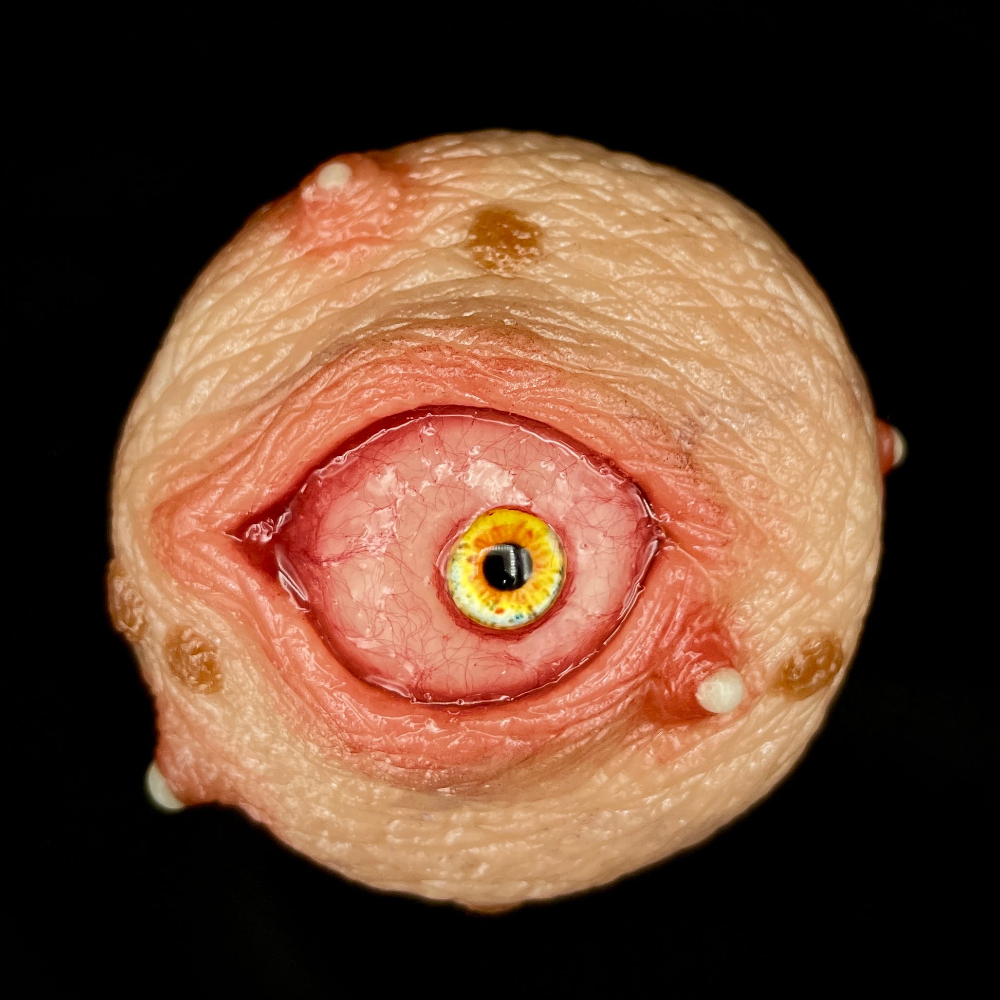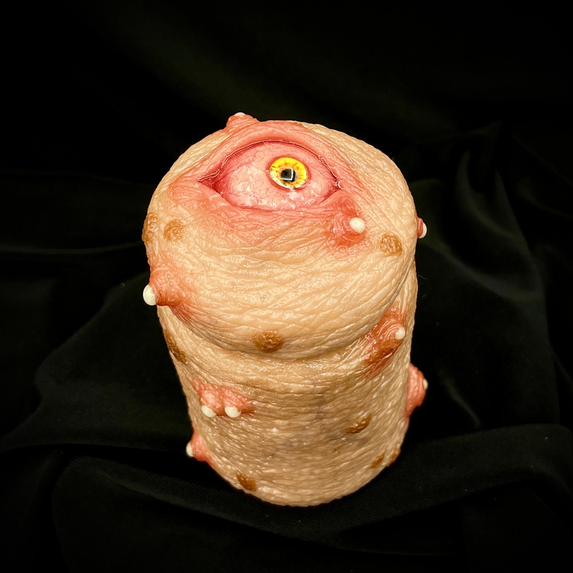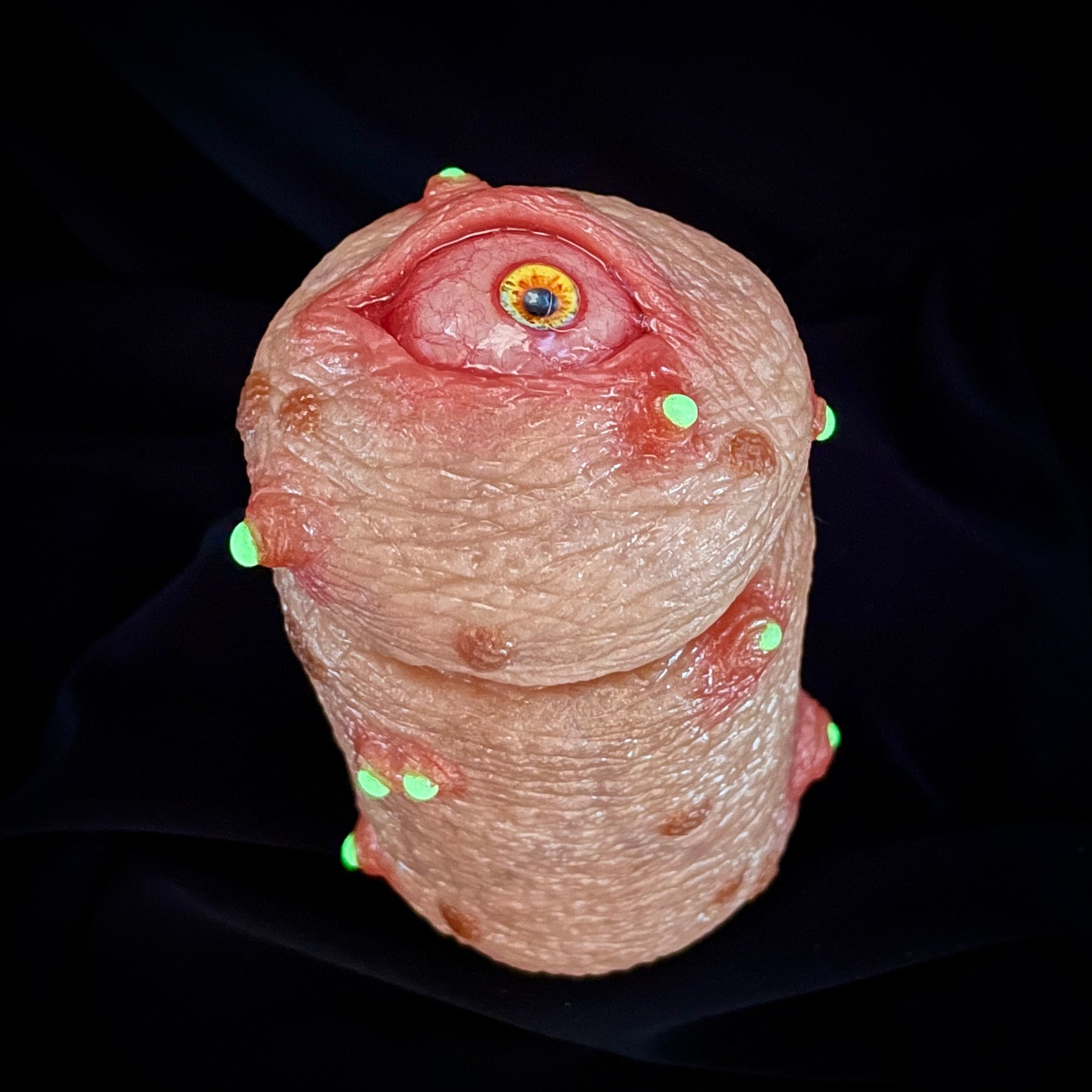 Meet Horace, a one-of-a-kind, one eyed jar that's the perfect combination of form and function! Made from fleshy polymer clay wrapped around a recycled jar. Horace stands 4" tall and holds a whopping 2.67 fluid ounces - the perfect size for, well, whatever your heart desires. With a screw-top lid, he's always ready to keep your stuff safe 'n' secure. Get funky with Horace and his 12 glow in the dark pustules!