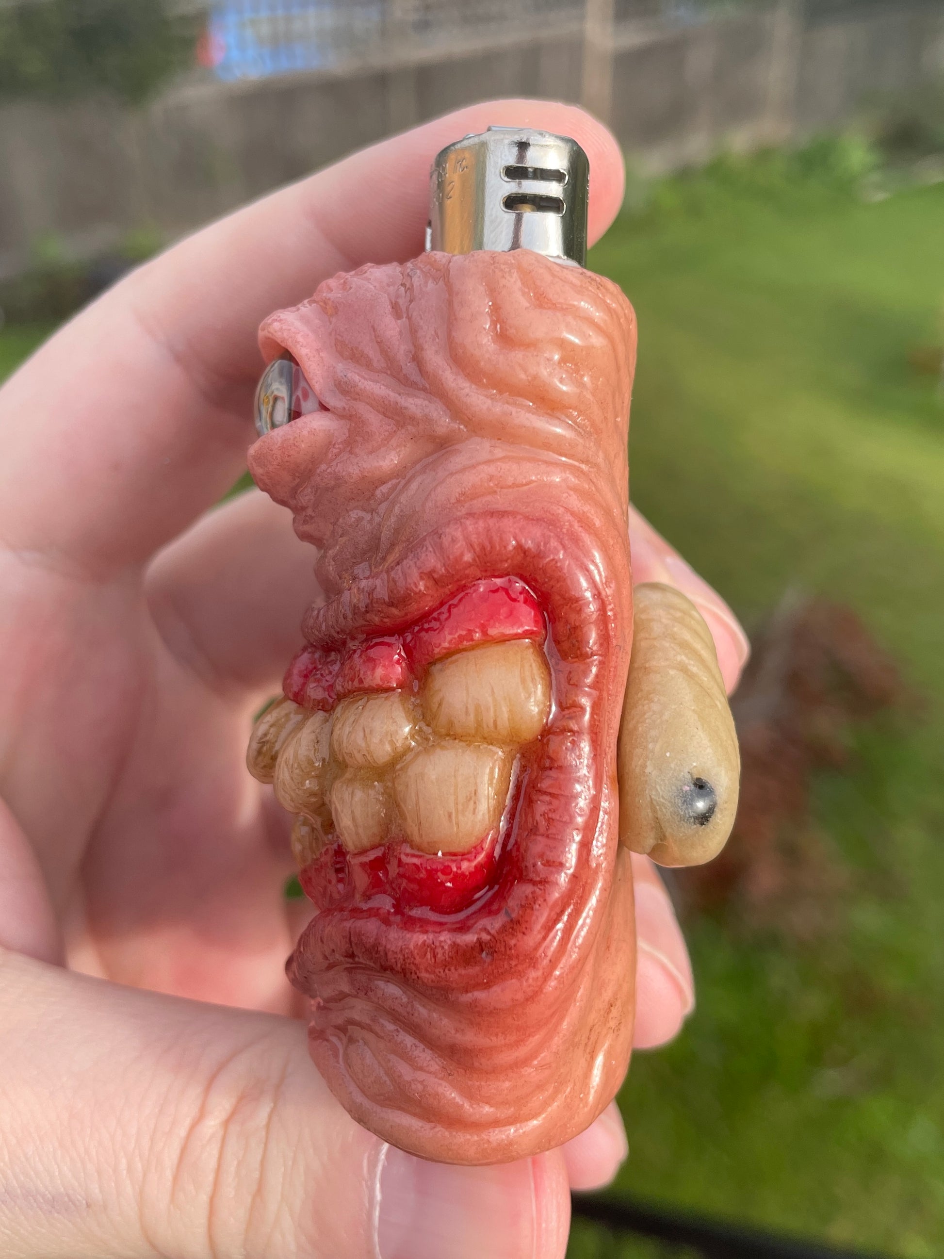 Hand sculpted and painted in Canada on Vancouver island, These one of a kind full sized Bic lighter skins are an absolute perfect addition to your home to spark a conversation, a birthday candle, incense, whale oil lamps, or you know whatever.