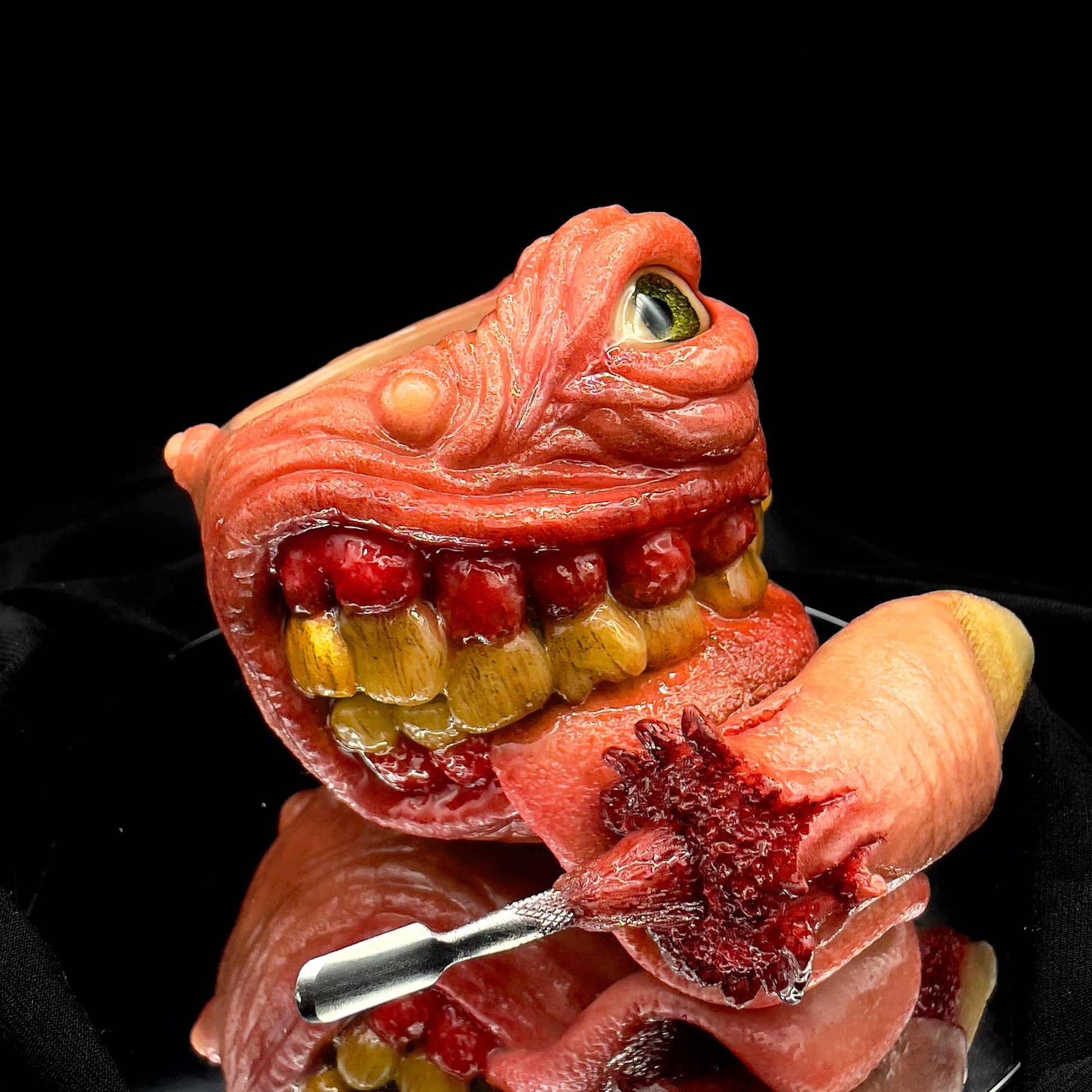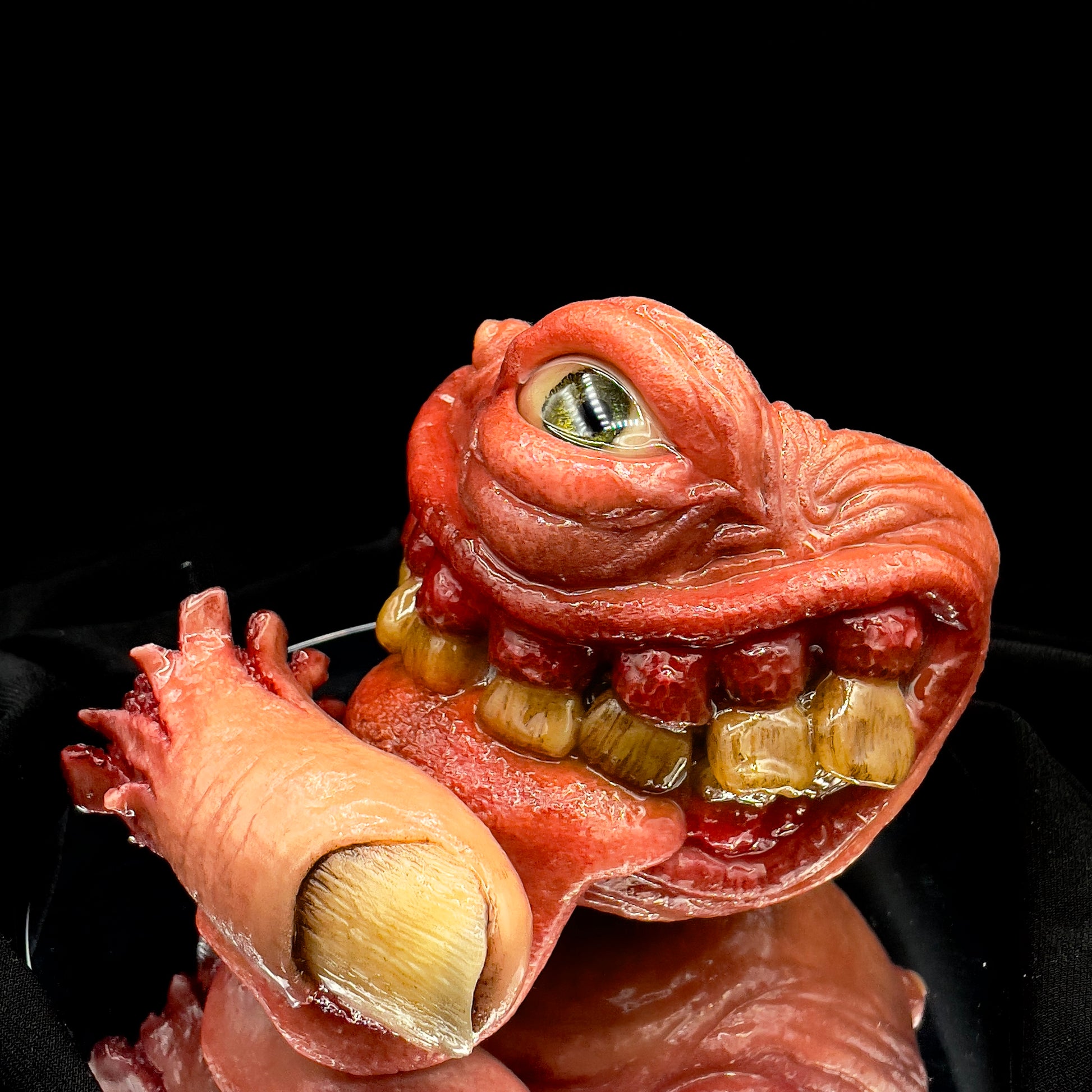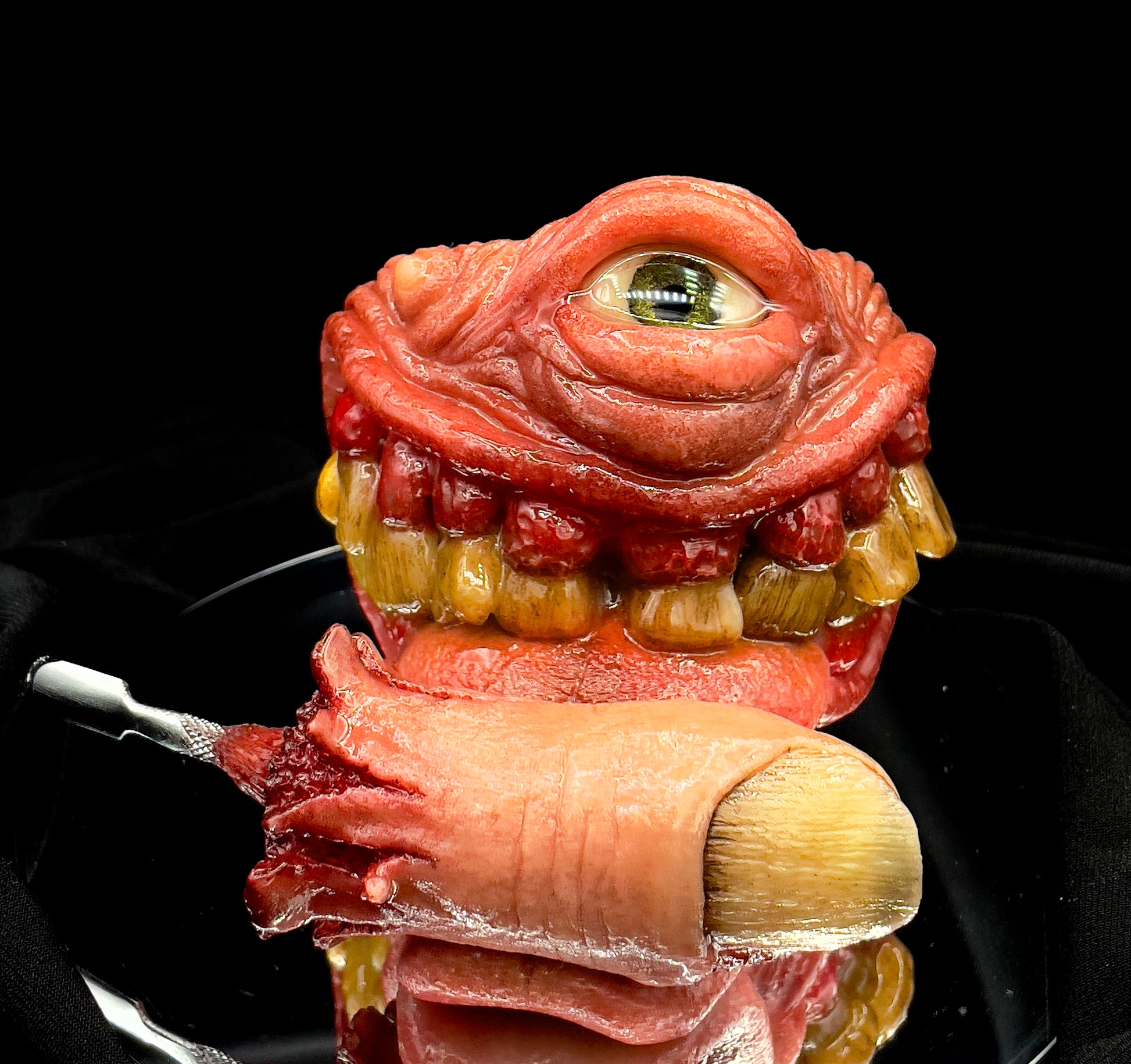 This green eyed gnarly toothed fella is a one of a kind sculpture never to be replicated!
