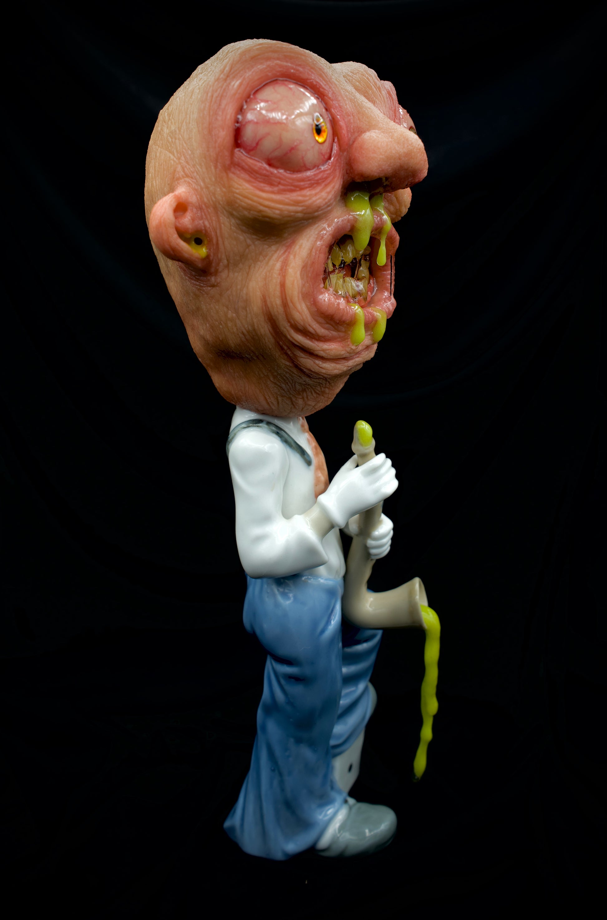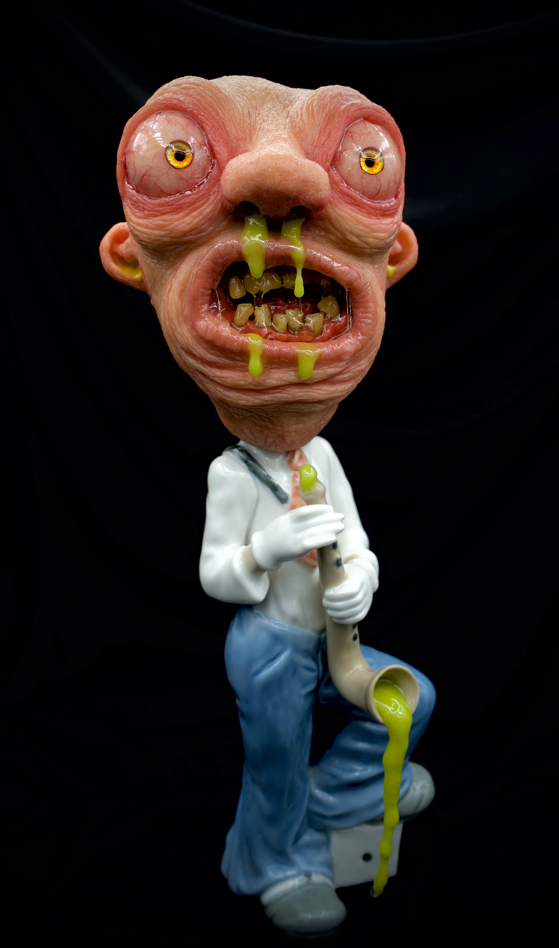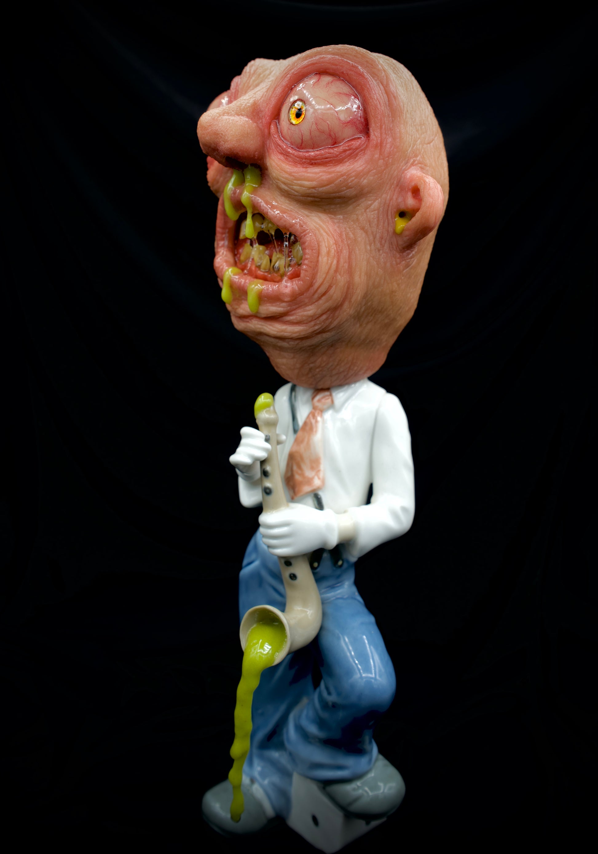 Introducing Seymour Sax, the epitome of twisted humor and repulsive artistry! This unique sculpture is a mesmerizing amalgamation of polymer clay and a recycled ceramic figurine, resulting in a mind-boggling creation that defies all expectations.