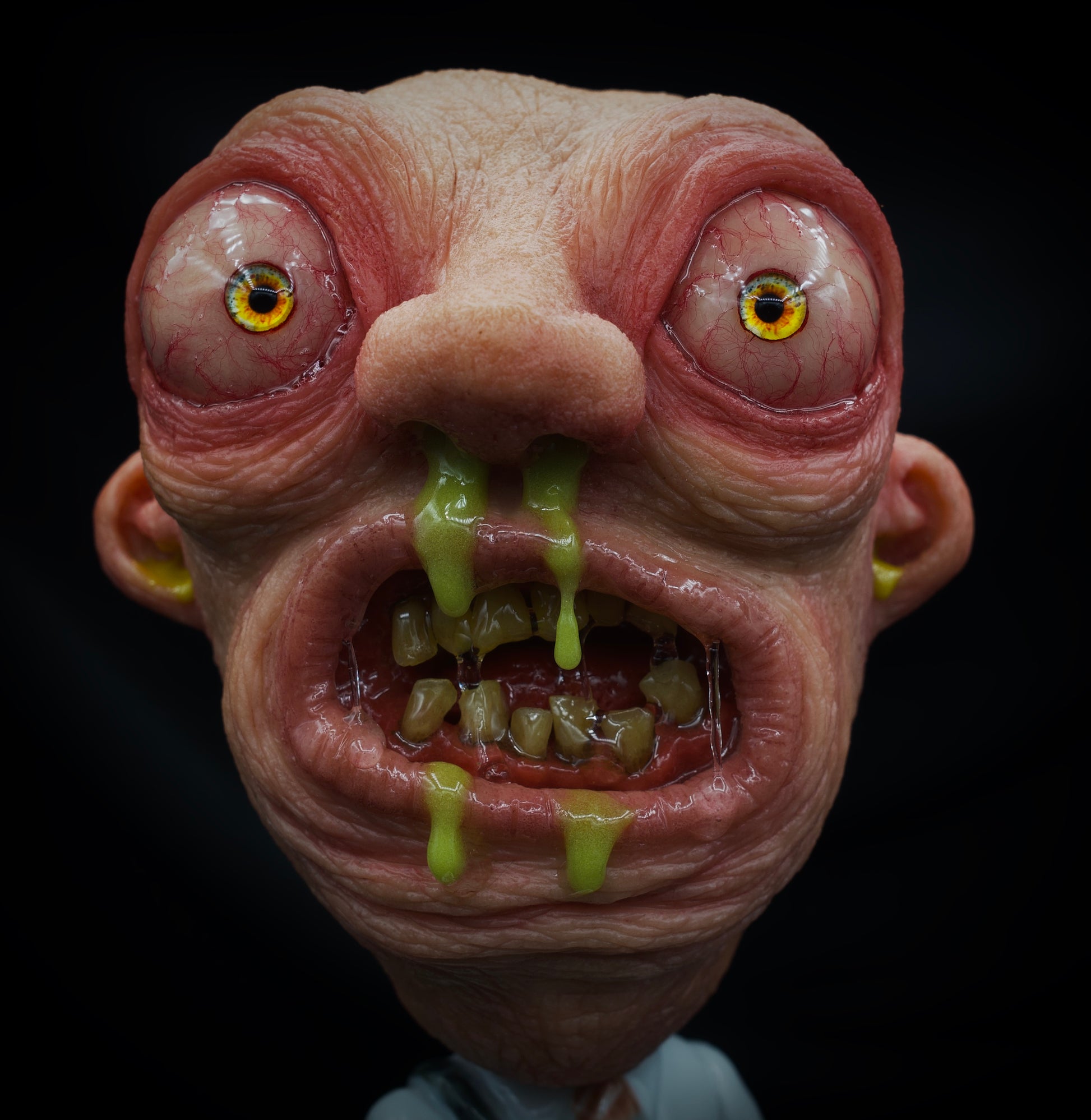 But wait, there's more! Seymour Sax takes his repulsiveness to new heights with the marvelously disgusting feature of drool and glow-in-the-dark snot dripping down and out of his saxophone. It's simultaneously fascinating and stomach-churning to witness this grotesque masterpiece come to life, illuminating the darkness with its eerie glow.