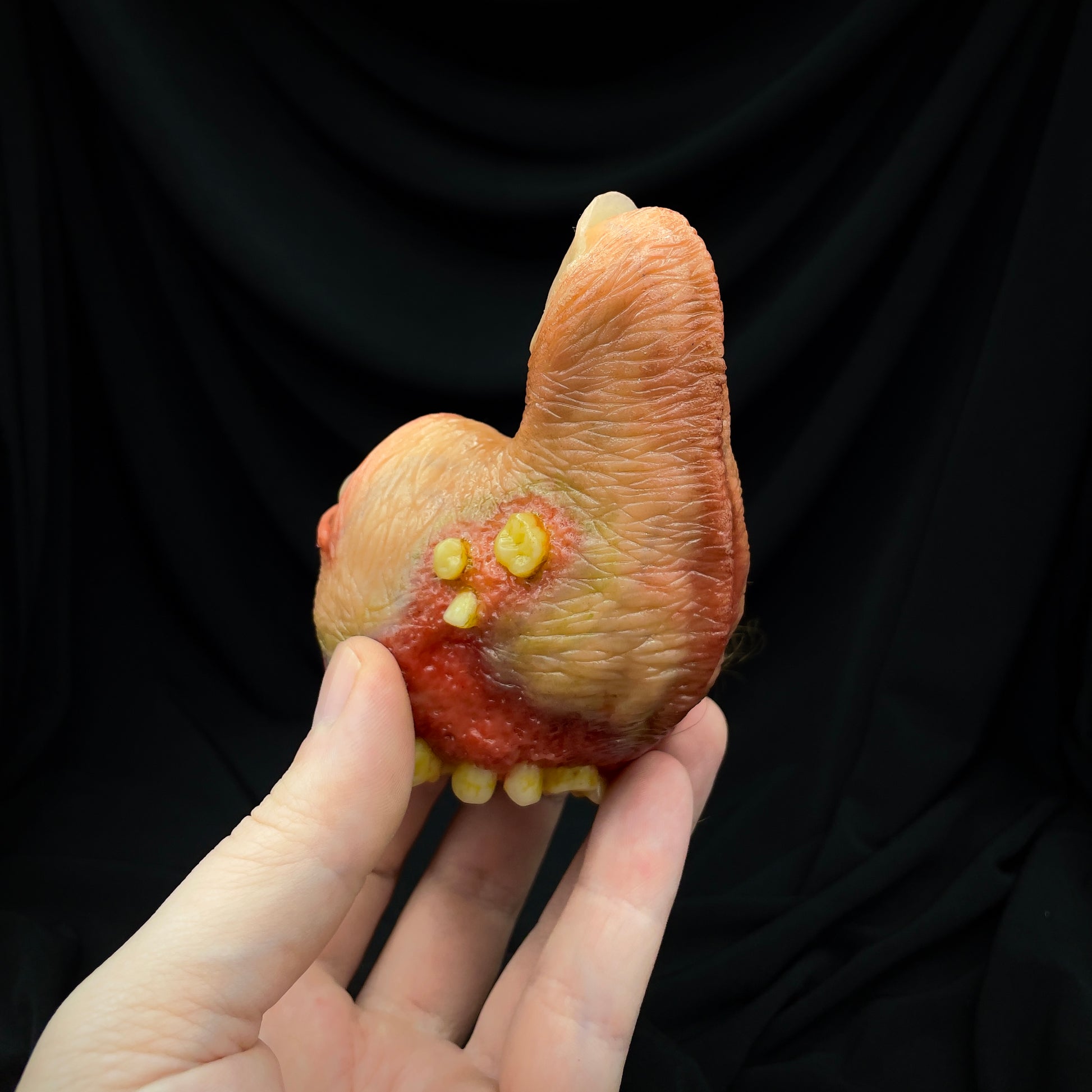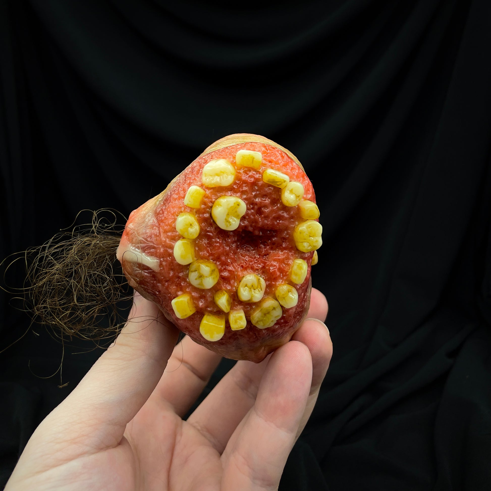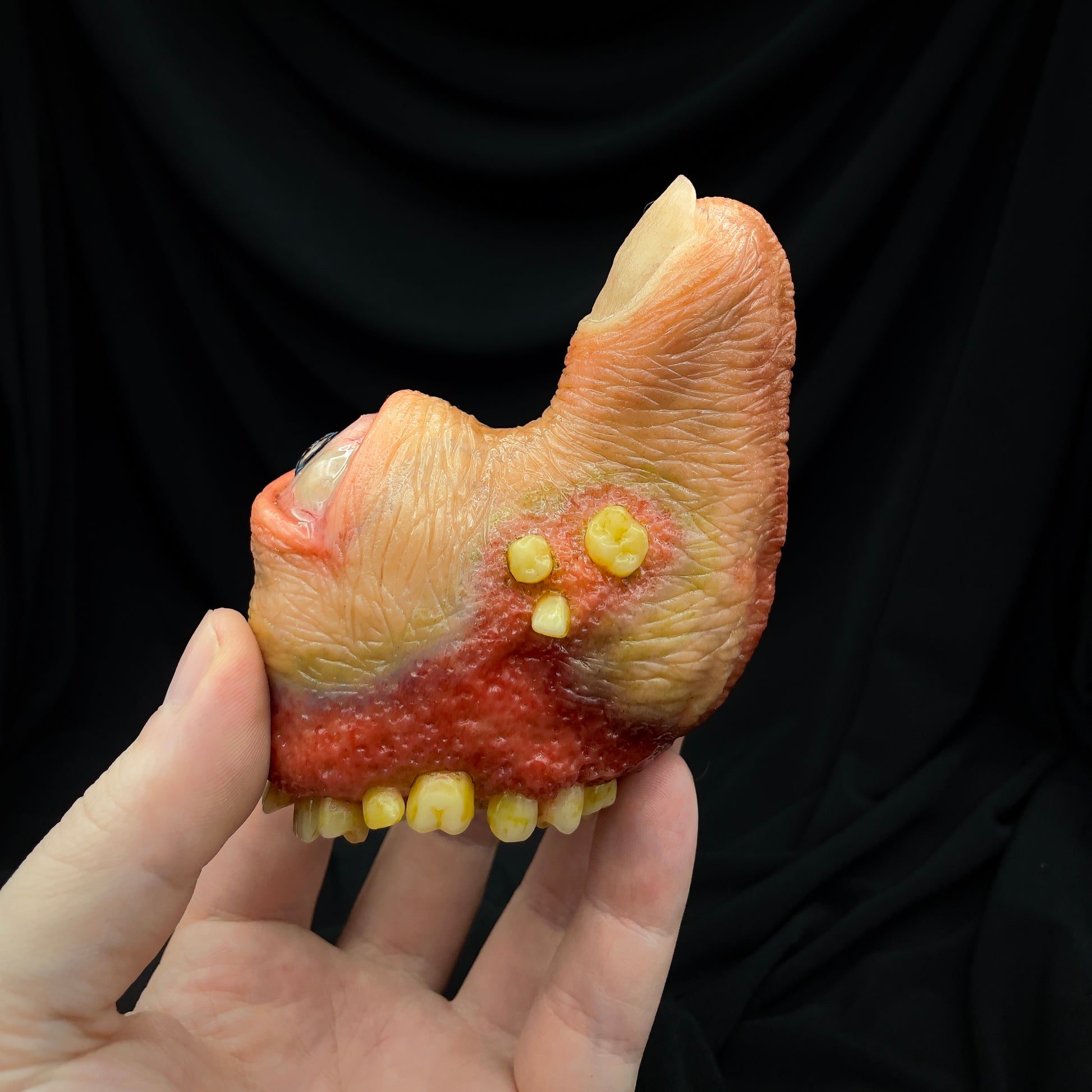 Adopt Toby for your collection: he comes with one bulging blue eye with a cataract and yarn fibre veins, one custom sculpted toe nail, and nineteen resin-casted teeth! Plus, he's got an erupting boil with hair, sealed with a durable clear coat and UV resin.