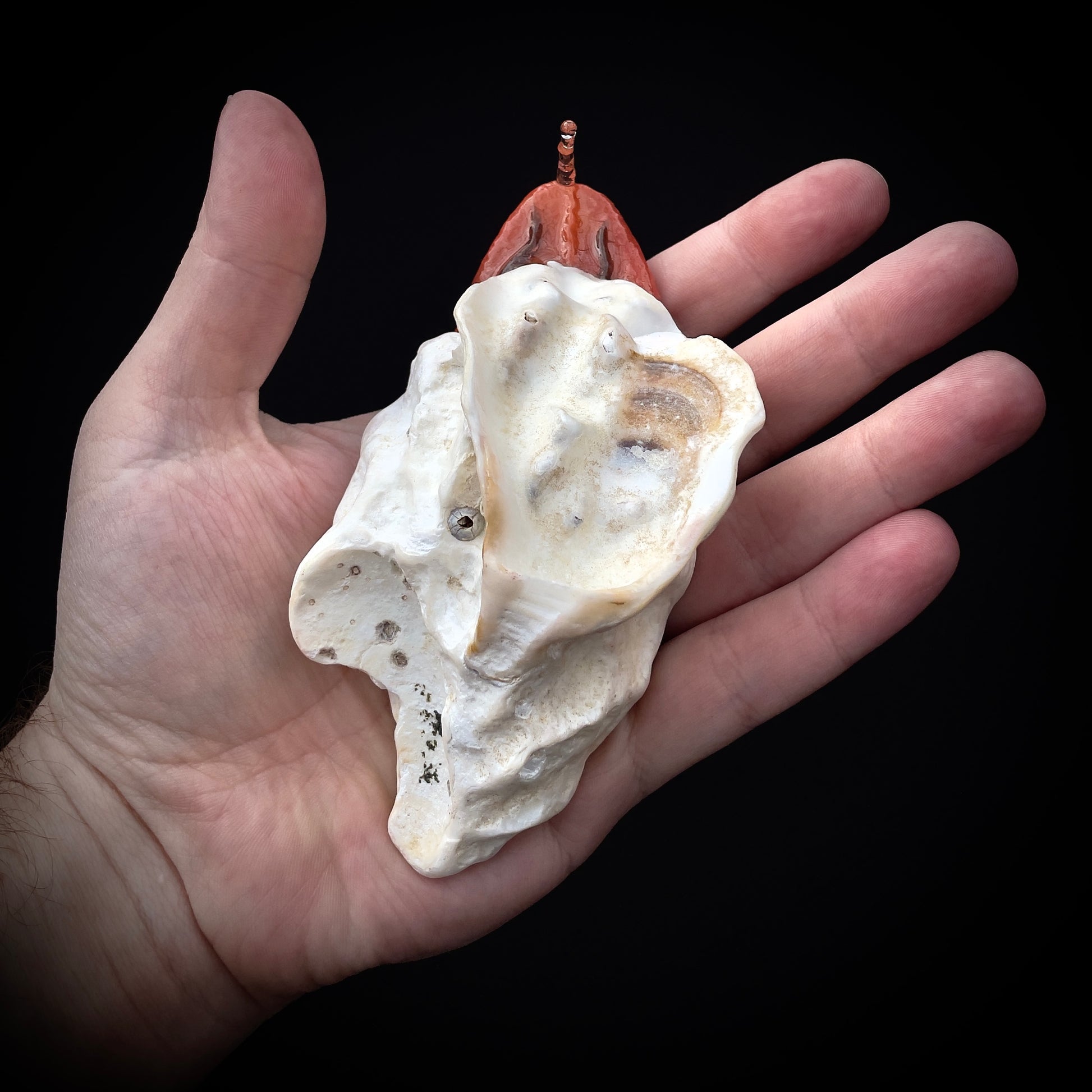 * Hand sculpted tongue inside a shell with UV Resin Drip.